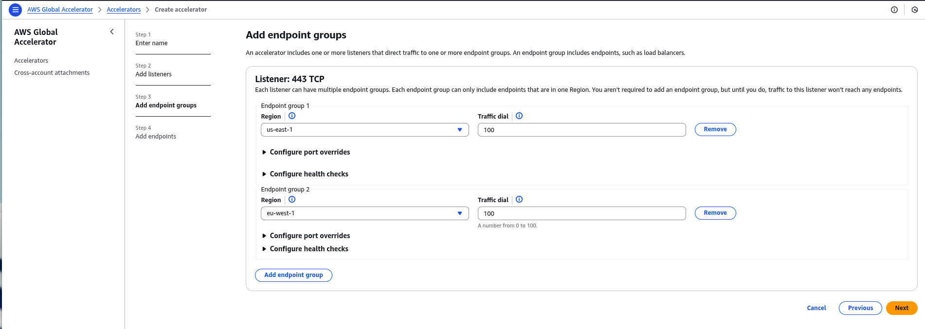 For example, running traceroute to the DNS name from different geographic locations should show traffic reaching the regional load balancer closest to that location. This confirms Global Accelerator is correctly directing users to the nearest endpoint, ensuring low latency and high availability.