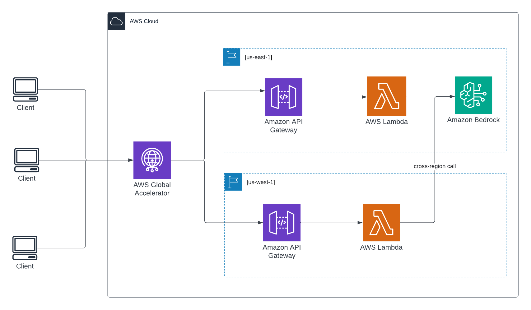 This guide demonstrates how to build a globally available, multi-region GenAI API using Amazon Bedrock, API Gateway, Lambda, and AWS Global Accelerator. It addresses the limitations of single-region deployments by distributing workloads across multiple regions to improve latency, availability, and resilience.