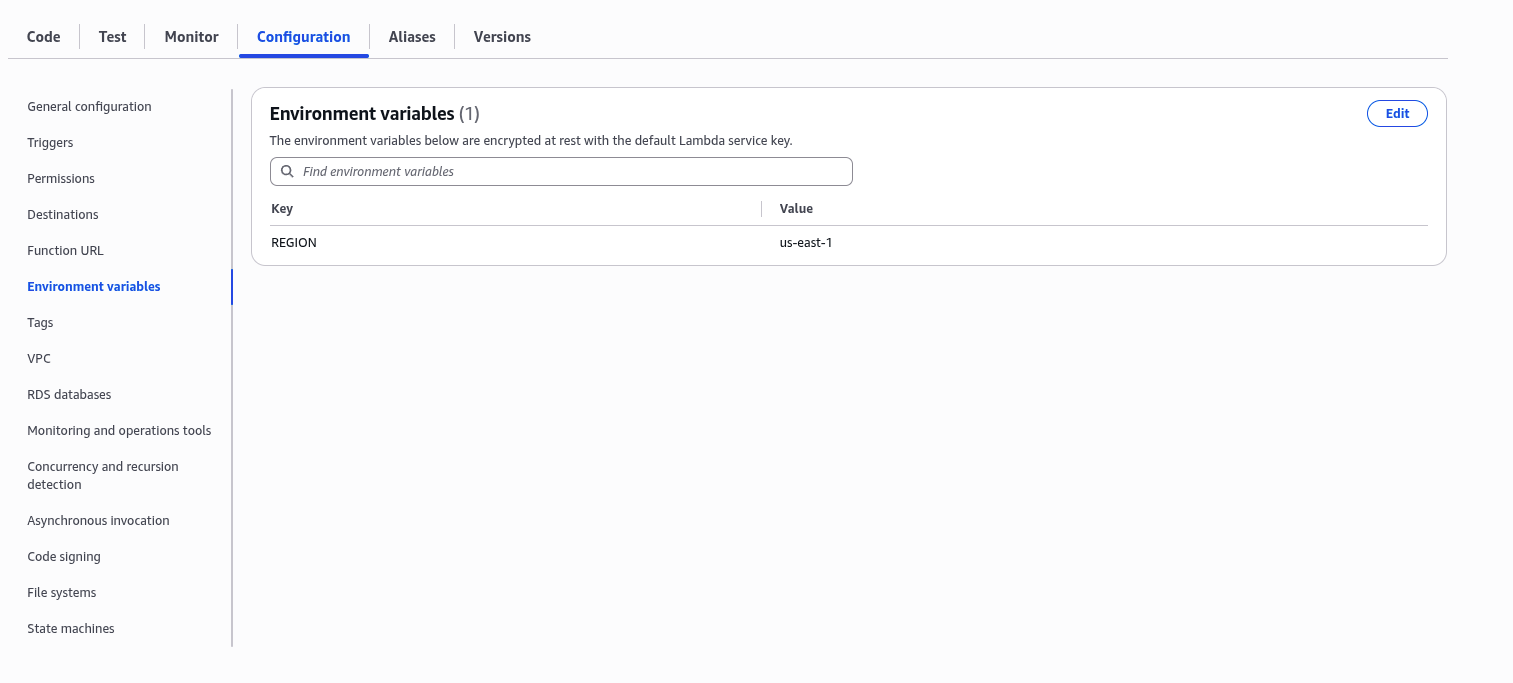 Repeat the previous steps to deploy identical Lambda functions in other AWS regions (e.g., eu-west-1). For all functions, keep the REGION environment variable set to us-east-1 to ensure they invoke Amazon Bedrock in the correct region.