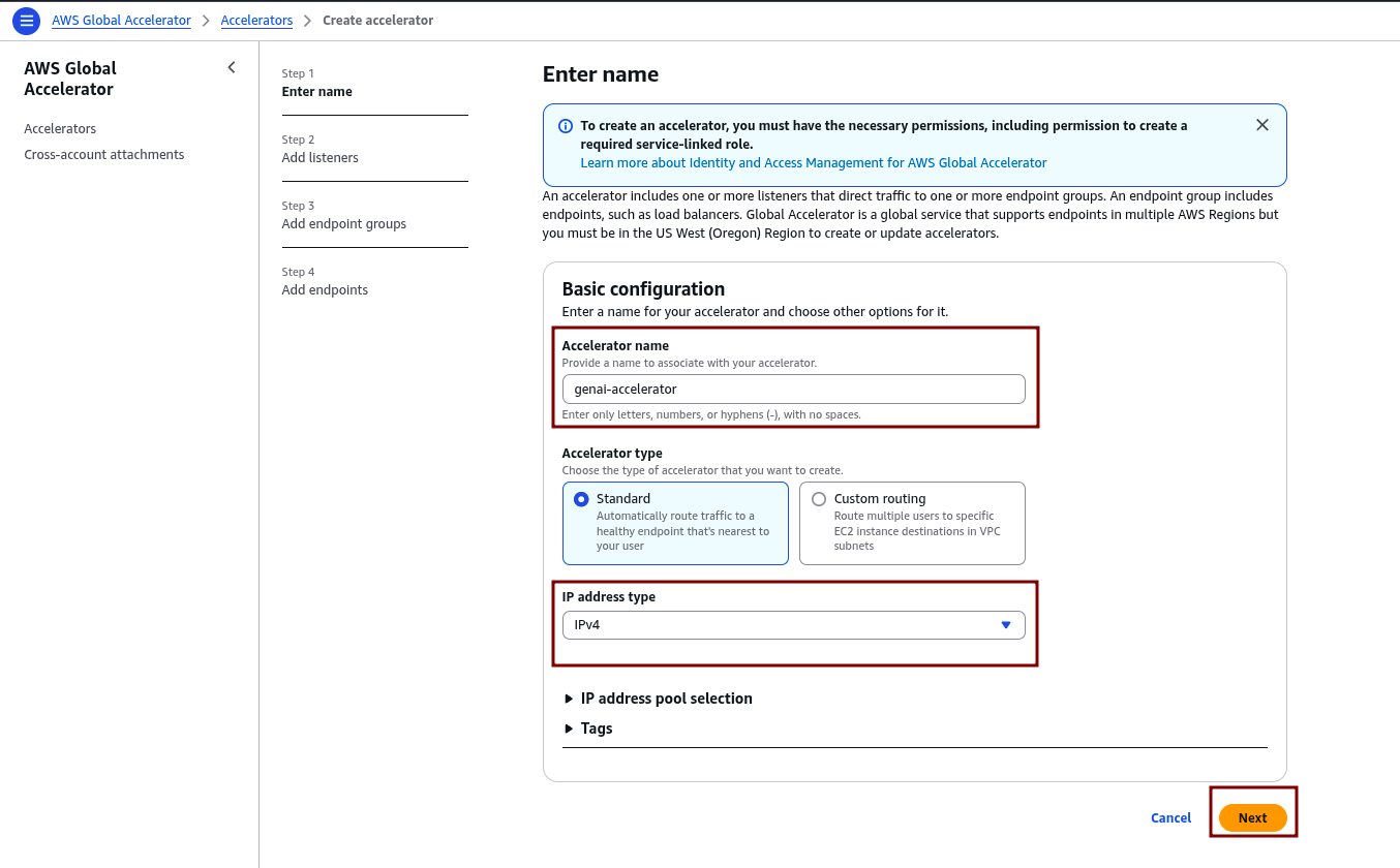 - Enter a name for the accelerator (e.g., genai-accelerator).