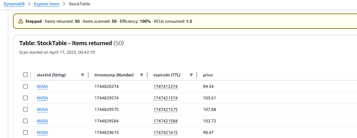 - DynamoDB Table: StockTable