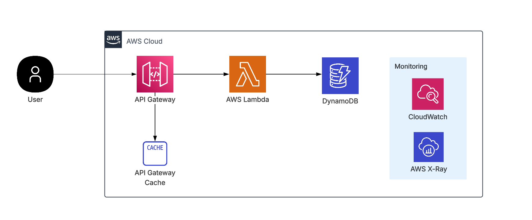 – CacheInvalidator: Manages cache invalidation. - IAM Roles: Proper permissions assigned for Lambda, API Gateway, and DynamoDB.
