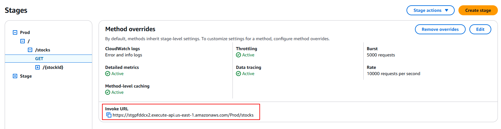 - In the left sidebar, click “Stages” and select your deployed stage name (usually